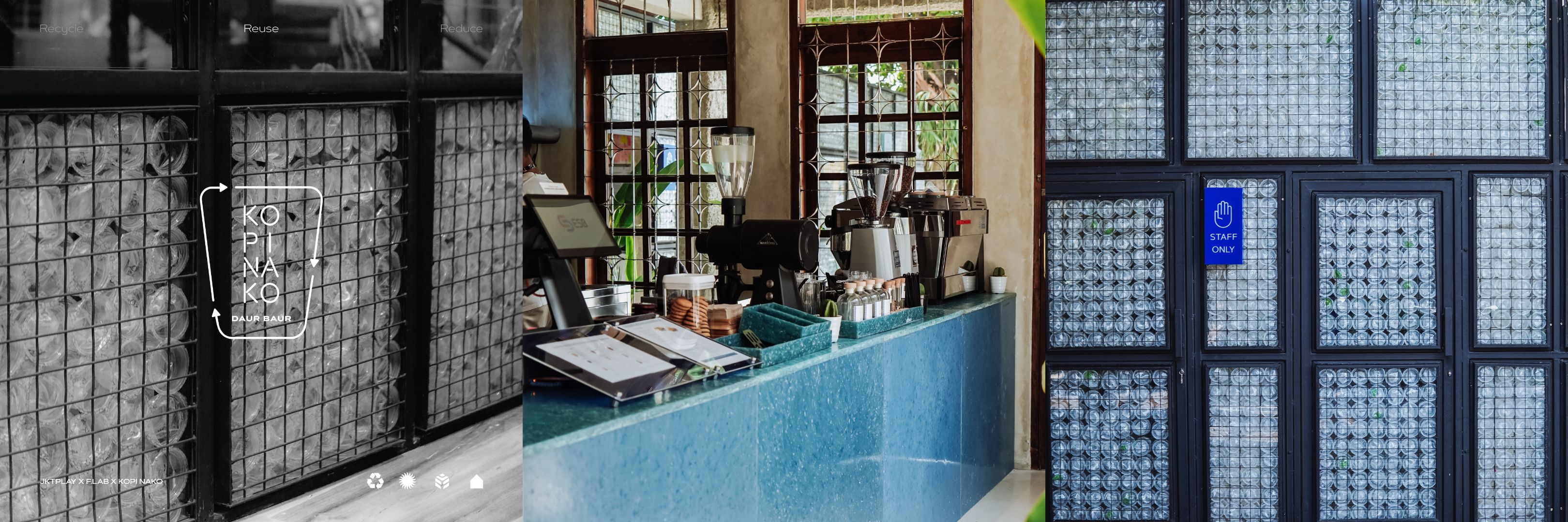 Through collaboration, we have implemented our creative idea of reusing Kopi Nako's plastic cup waste. By prioritizing sustainable design, we have transformed these plastic cups into an architectural element: a wall in our Daur Baur Room.